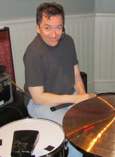 Alan says "I went to rehab for 6 months and thank GOD was able to take a 1st step in early May before my 25th birthday. I came up with the idea of mouth triggering via a headset mic in 1988 but the technology was a bit slow for that idea". Alan then discovered the amazing ddrum2 module. He adds "Upon getting it and thinking I could use my voice to trigger the bass drum I discovered the vibrations were not solid enough to create a solid kick sound. Ah, but a miracle of tongue clicking changed that and I was truly on my way! I have always said that module saved my career and worked even harder to retrain my approach to drumming and expression". Several years of pads but with real cymbals led to Alan's first few gigs and by '93 joining a local but busy band and having the dream of coming back realized.