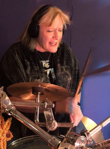 Eventually when Colleen was 48 and single she met another drummer. His name was Lenny. She adds "We got along fantastic and we decided that since he could move his business he could move in with me and set up his drum kit and have a place where he could really enjoy his drums. I remember being in the cellar doing laundry when all of a sudden I heard him wail away on that drum kit he set up. I couldn’t believe how LOUD it was and thought to myself – might as well get used to this. Lenny’s set was one that even if you WEREN’T a drummer you fell in love with it". He played drums most of his life and had 40 years under his playing. This kit was custom made by DW, and it was 10 pieces of tiger stripped wonder. She adds "I just HAD to learn how to play this drum kit. I fell in love with it. So I asked him – will you please teach me how to play drums? He said – yes but if I tell you it’s not meant for you then you need accept my decision. said fine". So Lenny had Colleen on the kit day and night and within 6 months had her on stage. She adds "I found myself playing with serious seasoned musicians. It was a bit intimidating but I was determined to become a local musician and that's exactly what I did".
