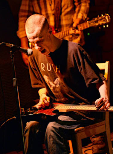 During his youth, the instrument he most wanted to play was the guitar, but couldn’t due to his disability. After a few years of trying to play conventional lap steel and the frustrations surrounding the limitations of only being able to get major chords with one slide, Mike stumbled upon a system invented by his friend and mentor, Brian Cober: double slide guitar.