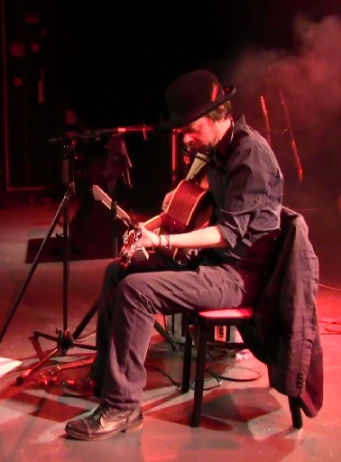 With the aid of an acoustic guitar or piano he sits center-stage and recounts with his powerful seducing voice the tales of his life on the back streets of Leeds/ England, all the years of touring clubs and bars of Europe and finally to his crippling road accident in Brighton/ England which still leaves him limping around with a stick like Dr House.