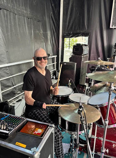 Ric says his biggest challenge is playing a left handed kit. He adds "I had a teacher latter in my career that said if he met me when I started he would have thought me to play right handed. Opens more opportunities to jam and fill in at a moment's notice. I had to o create a brace to hold the stick in my right hand. It works well but I can’t do a press role. lol. But I seem to find a way around it".