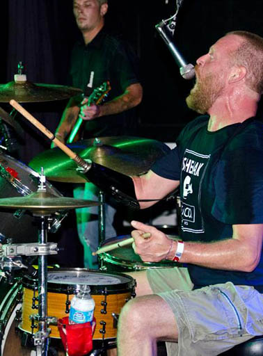 Decades later, Shawn's fitted a steam-punk prosthetic to his stump and is double-fisting a frighteningly intentional, musical barrage of his willing drum kit. Laying the foundation to his band's shredding guitar chords and cold-cock baselines. Harder, louder, precise as a sniper, each hit a reminder that some things are very permanent. Some beats go on.