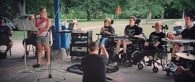 Train Wreck are a group of incredible musicians with disabilities. The term disability is a poor word especially in this context of this group. Each member of Trainwreck is a true musician and each member takes his or her music as seriously as any other musician. Trainwreck was established in 2005 after the hard work of their conductor Karl Sloman designed a way to allow students to access music through electronics and triggers in both their wheelchairs and separate unique designs.