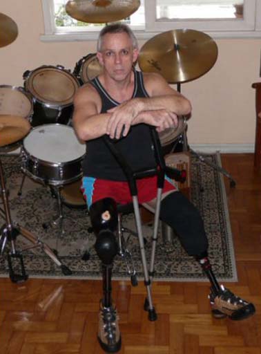 Tulio says "I became a double leg amputee in July, 2003. Like alot of people, I had lost my job, ended a relationship, and went into depression. I had rent to pay, and lots of difficulties, including health problems; but I didn't seek help.I had very low self-esteem and at this time I was battling an addiction to barbituric: (anti-depressants and tranquilizers). I ended up in a terrible accident with a train and as a result, had to fight for life against death, good against evil, and an attempt at daily self-will. Fortunately, this kind of amputation allowed me to still play the drums relatively easy with the use of prosthetics."